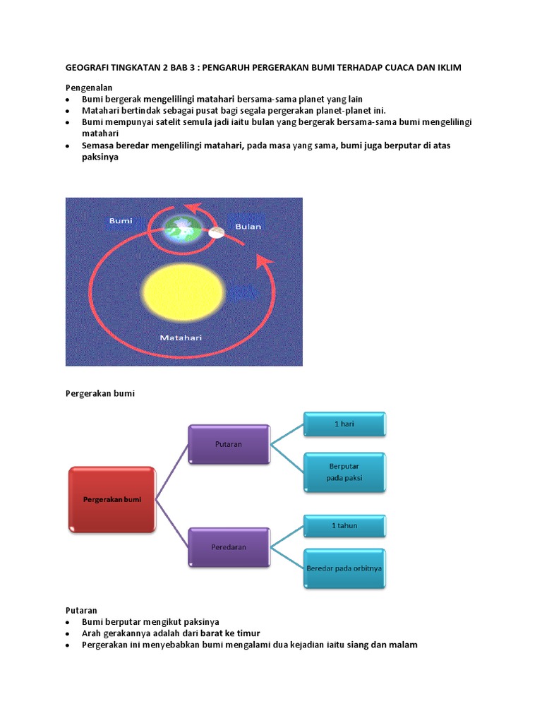 Pengaruh Pergerakan Bumi terhadap Cuaca dan Iklim. Isi Kandungan Tutup Nota Geografi Tingkatan 4 SPM Bab 1 Hingga Bab 10 Sukatan Pelajaran Geografi Tingkatan 4. Nota Geografi Tingkatan 4 KSSM Bab 15 Untuk pelbagai info boleh follow telegram dan web di bawah.